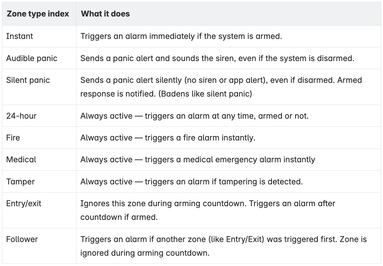 Use the table below to choose the appropriate zone type.