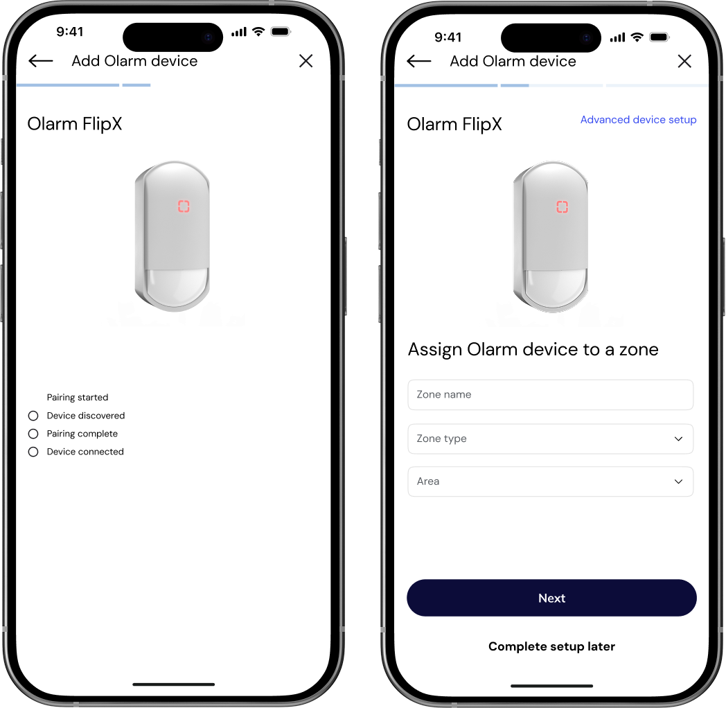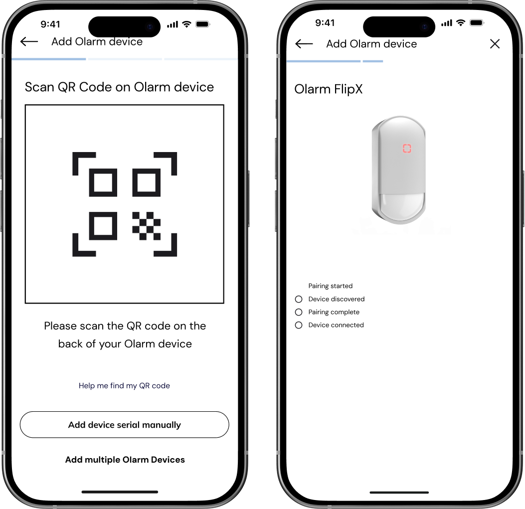 - Scan the Olarm FlipX’s QR code