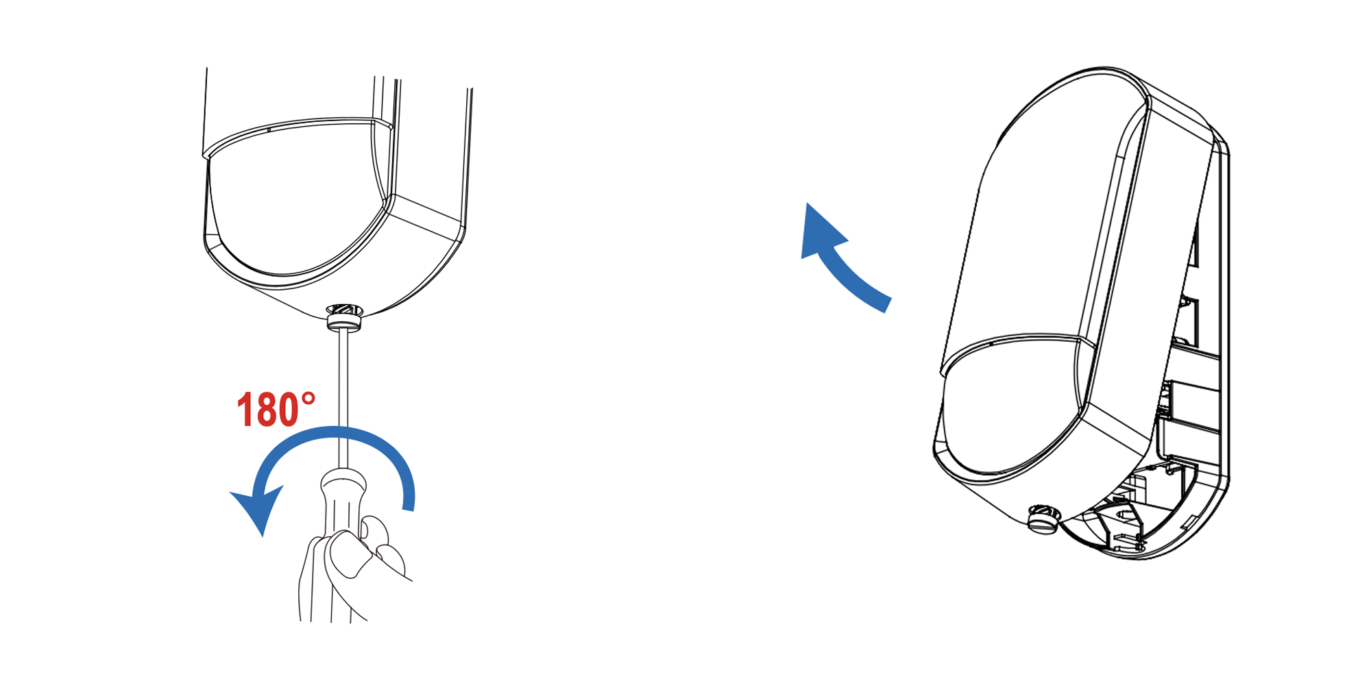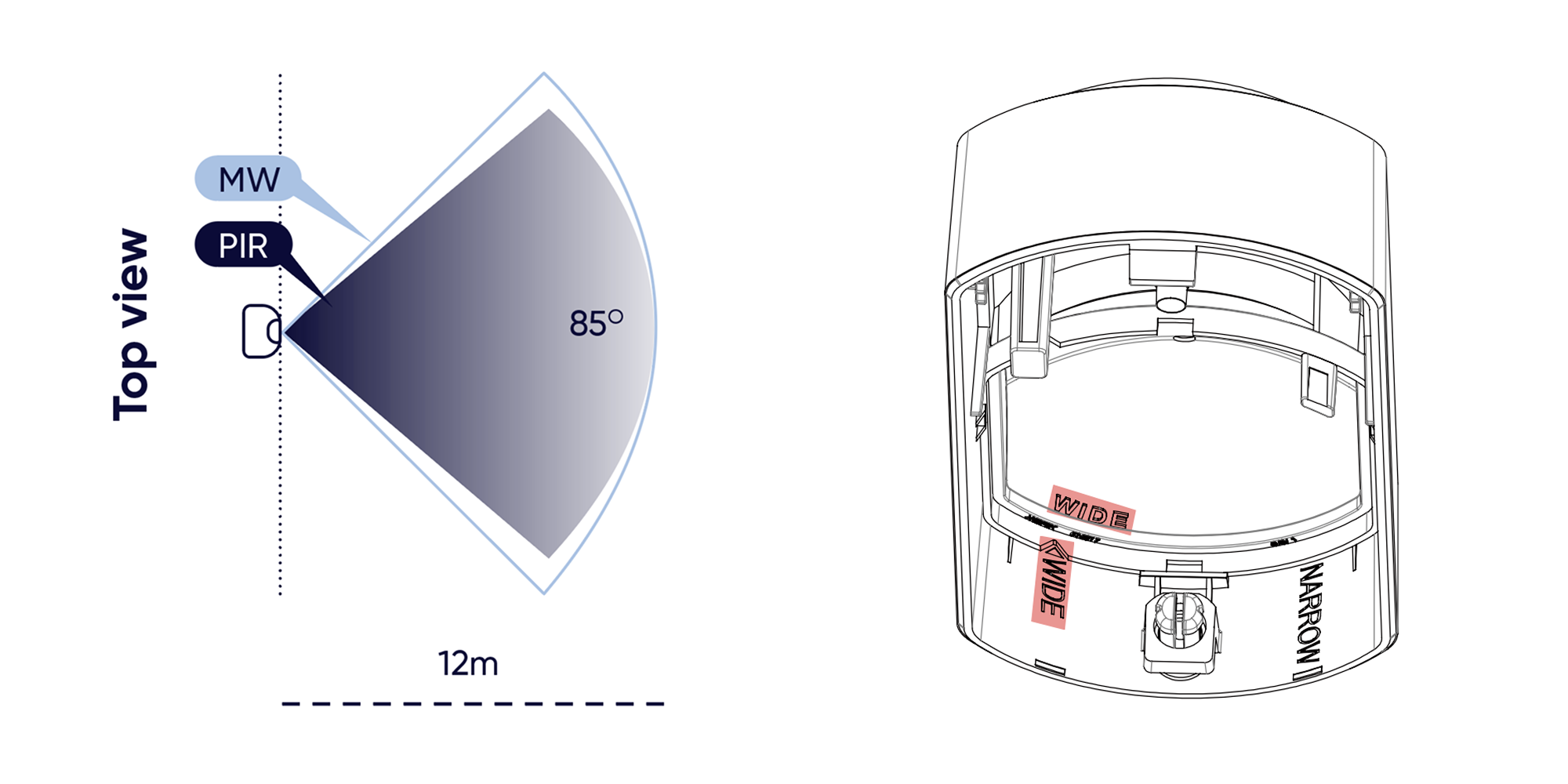 Choose between wide or narrow detection depending on where you install it. This is achieved by flipping the lens.