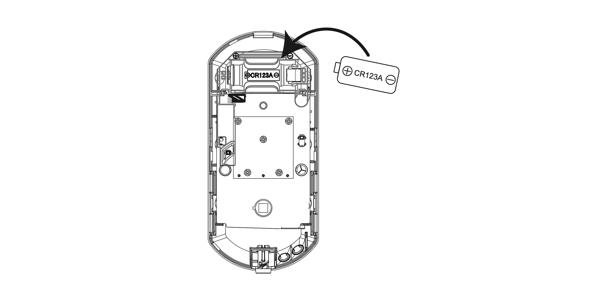 Step 3: Insert the Olarm battery (CR123A)