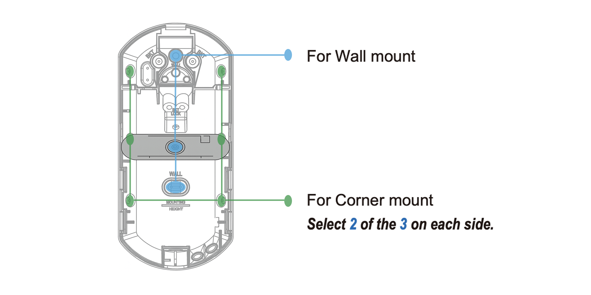 BKT are for the joining the bracket and detector, and the BKT LOCK holes are to fix the detection angle of the Olarm FlipX.