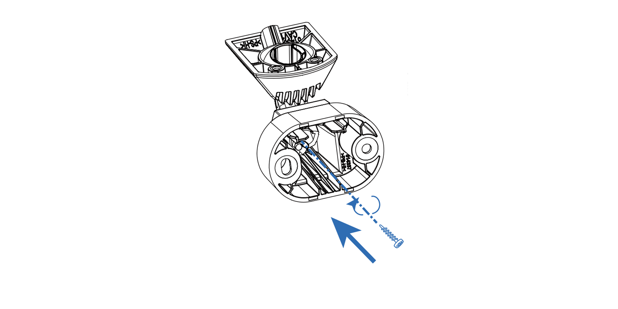 Using the screws provided, fasten the Olarm FlipX to the bracket through the “BKT” screw slots.